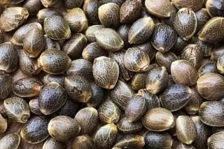 A clean display of premium cannabis seeds.